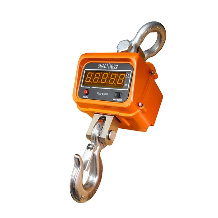 Весы крановые электронные (ВЭК) представляют собой компактное устройство, состоящее из крепёжной петли и крюка, аналого-цифрового преобразователя и тензометрического датчика. Петля предназначена для крепления весов на крюк крана либо горизонтальную балку, а крюк весов используется для подвешивания груза, вес которого нужно определить.